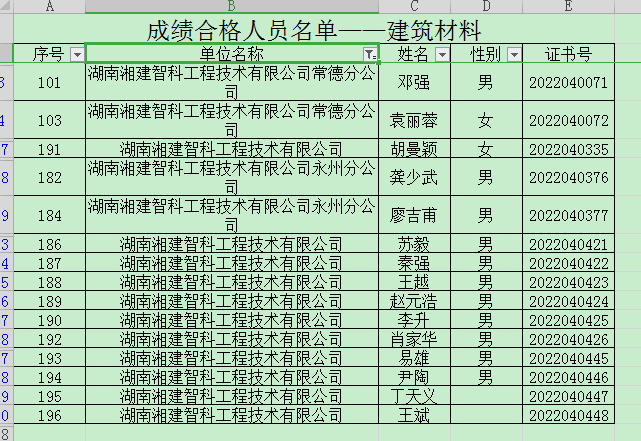 2022年建設工程質量檢測技術人(rén)員(yu科綠án)培訓班考核成績公布,湘建智科總部及分(fēn)公司我時15人(rén)通過考核